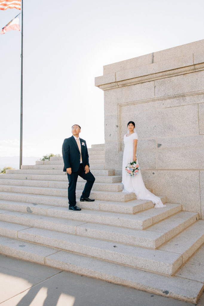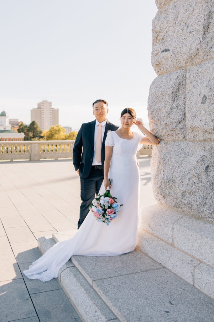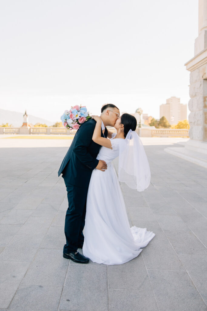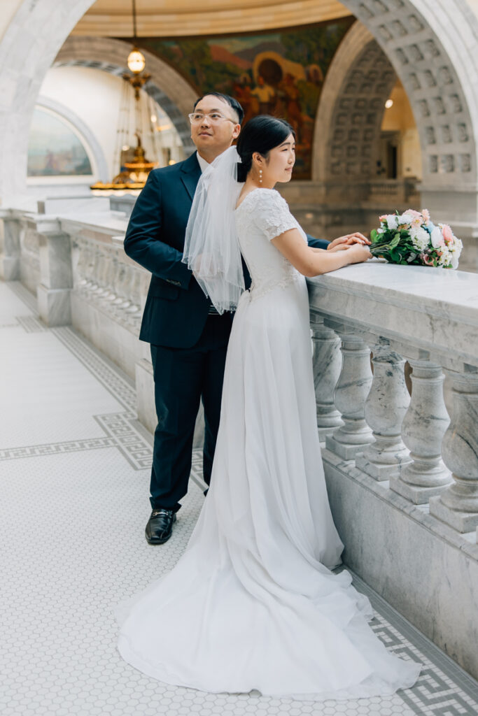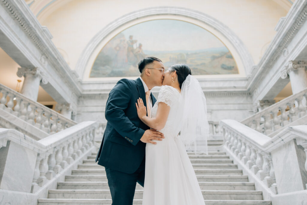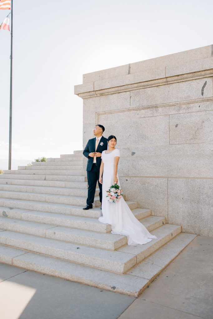 Theme and personal style: Think about your overall wedding theme and personal style. If your wedding has a specific theme or color scheme, you may want to choose a location that complements or enhances it. Indoors or outdoors, select a setting that aligns with your vision and personal aesthetic. The SLC Capital building is a very formal and elegant style on the inside or outside, so either would work here!