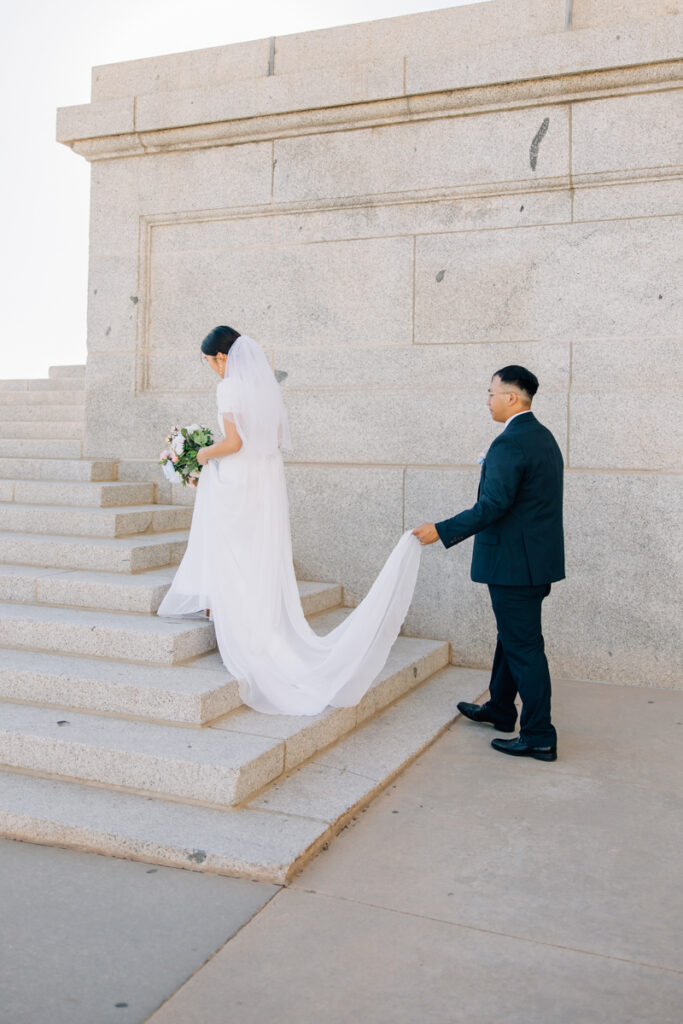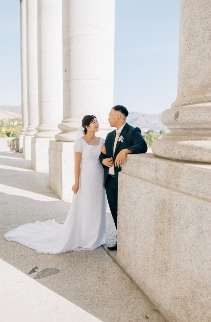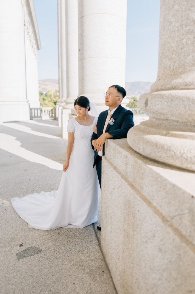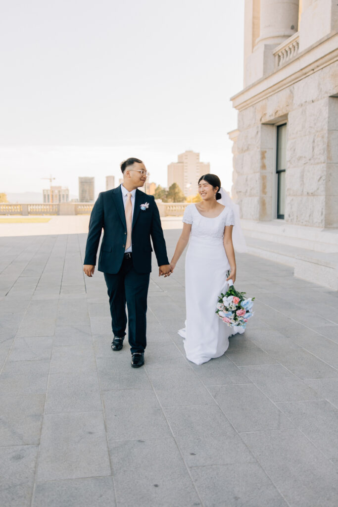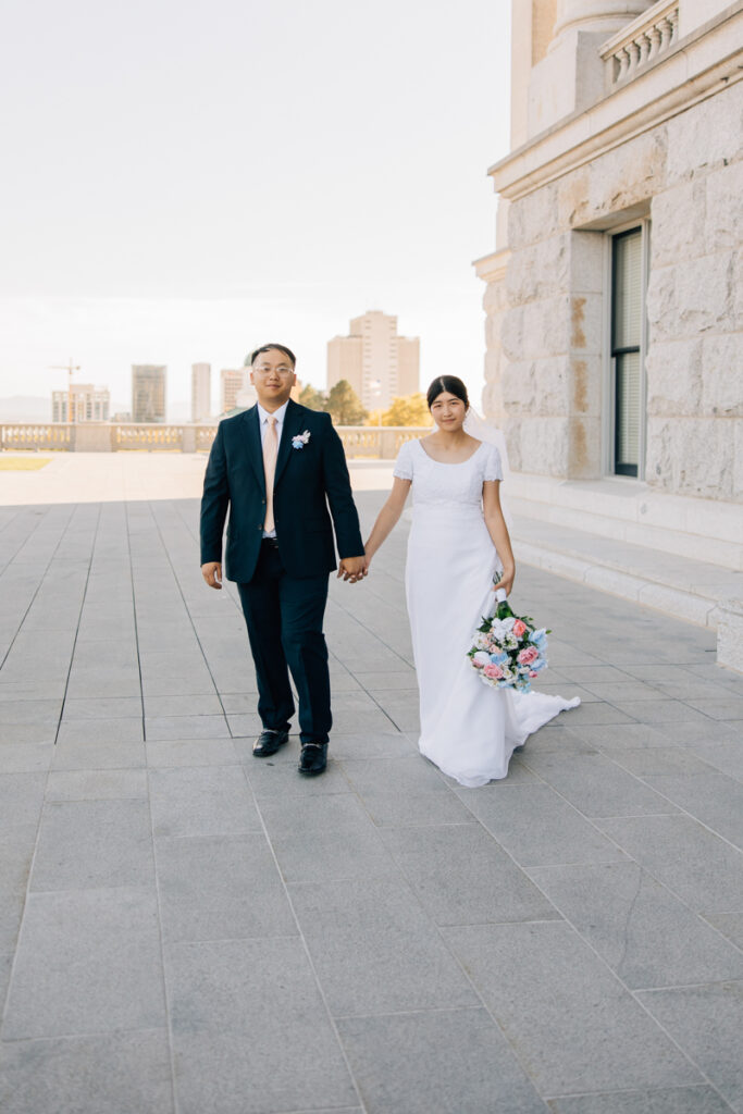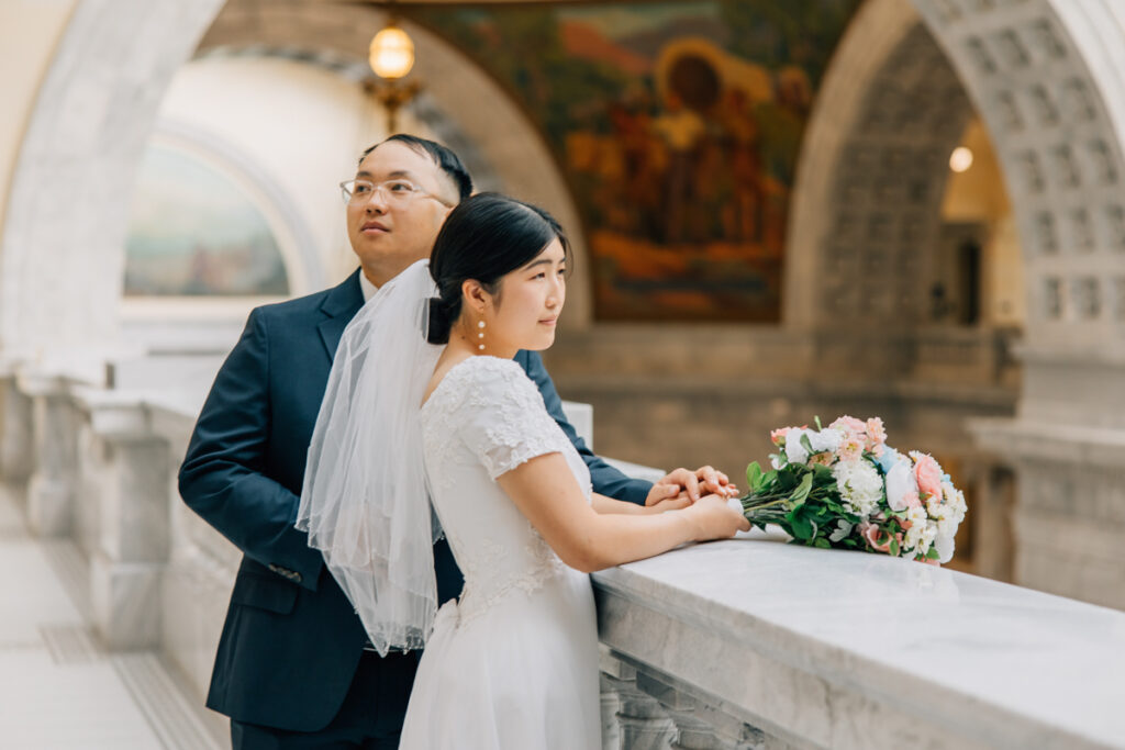 Theme and personal style: Think about your overall wedding theme and personal style. If your wedding has a specific theme or color scheme, you may want to choose a location that complements or enhances it. Indoors or outdoors, select a setting that aligns with your vision and personal aesthetic. The SLC Capital building is a very formal and elegant style on the inside or outside, so either would work here!