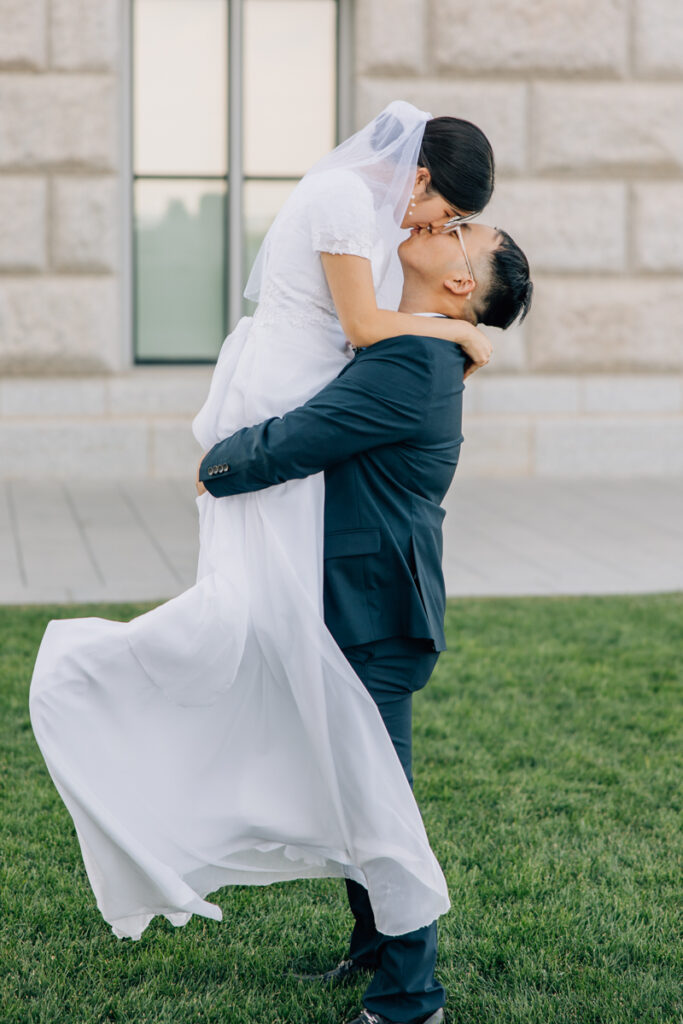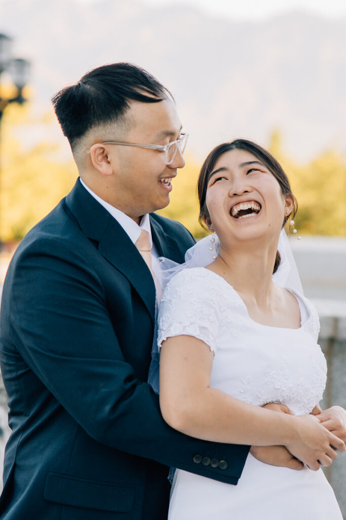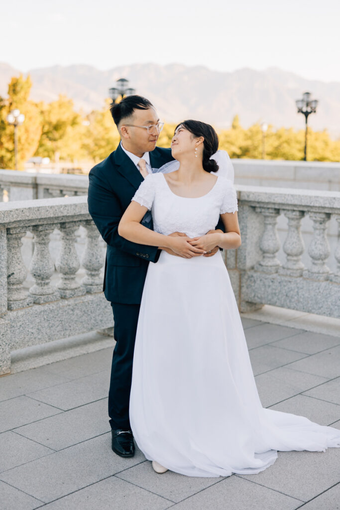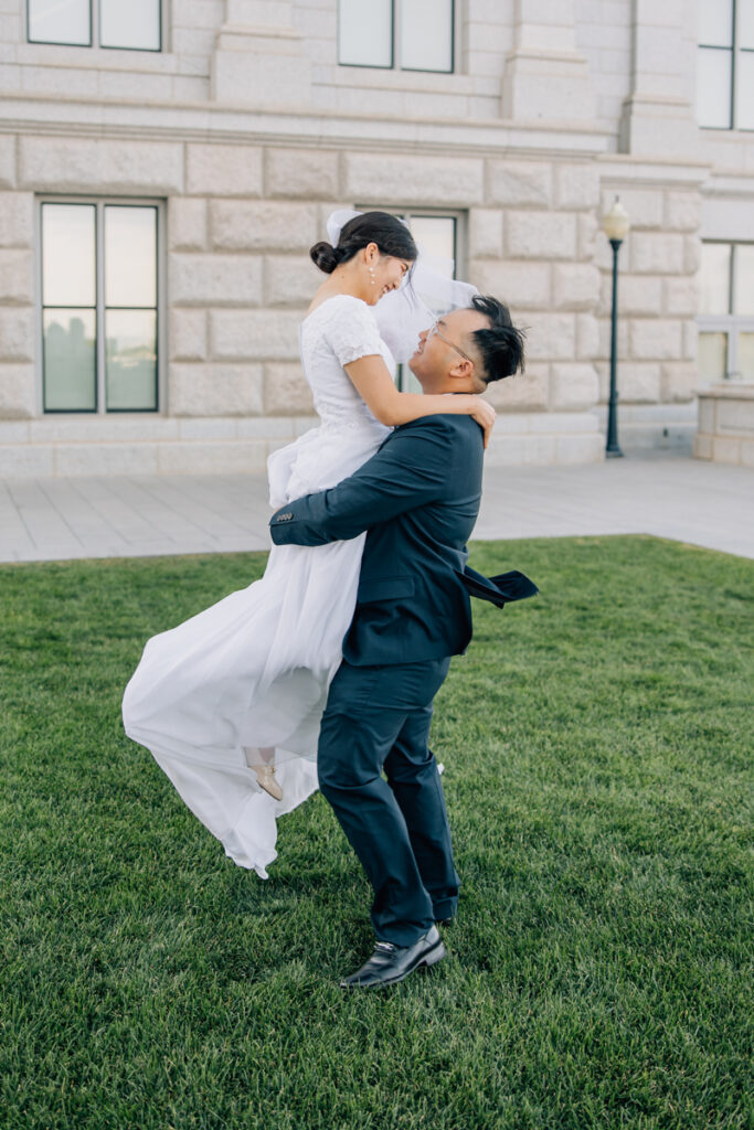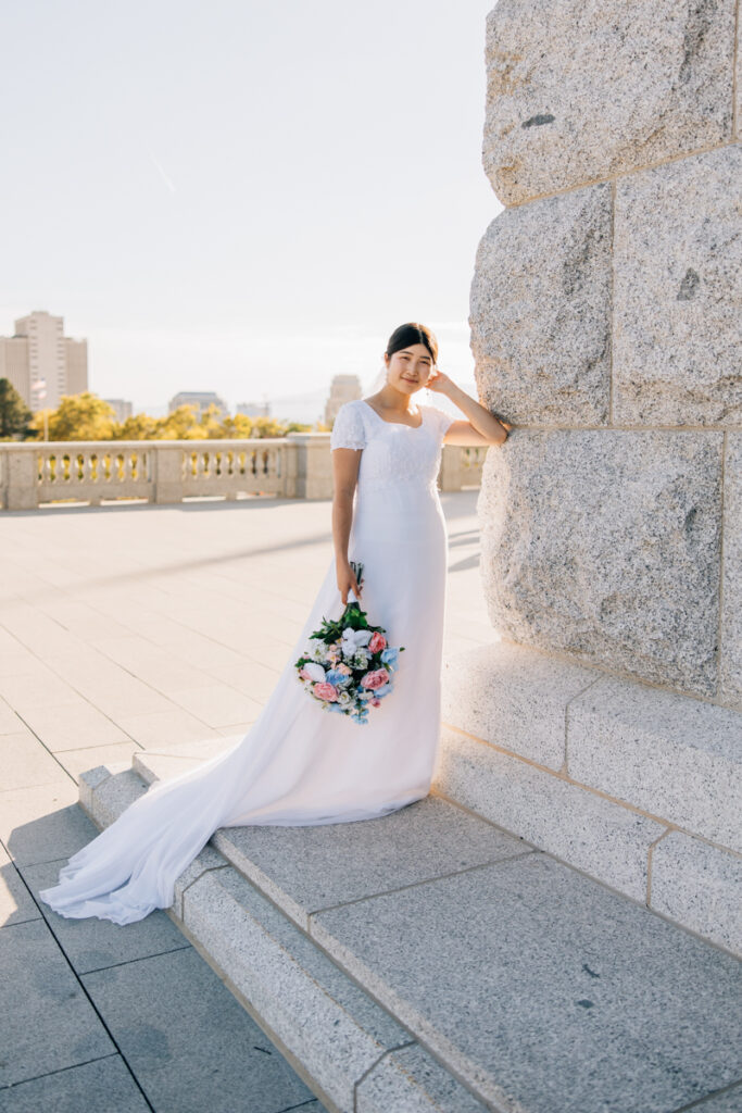 Doing bridals at the SLC Capital is a favorite location for a couple of reasons. You get the beautiful, classic architecture and granite stone inside, with that big fairytale staircase. And outside, you have the stunning views of the building, trails with trees surrounding it, a fountain, and a grassy area. The best of both worlds really. Deciding on whether to do your bridal session indoors or outdoors is something to consider!